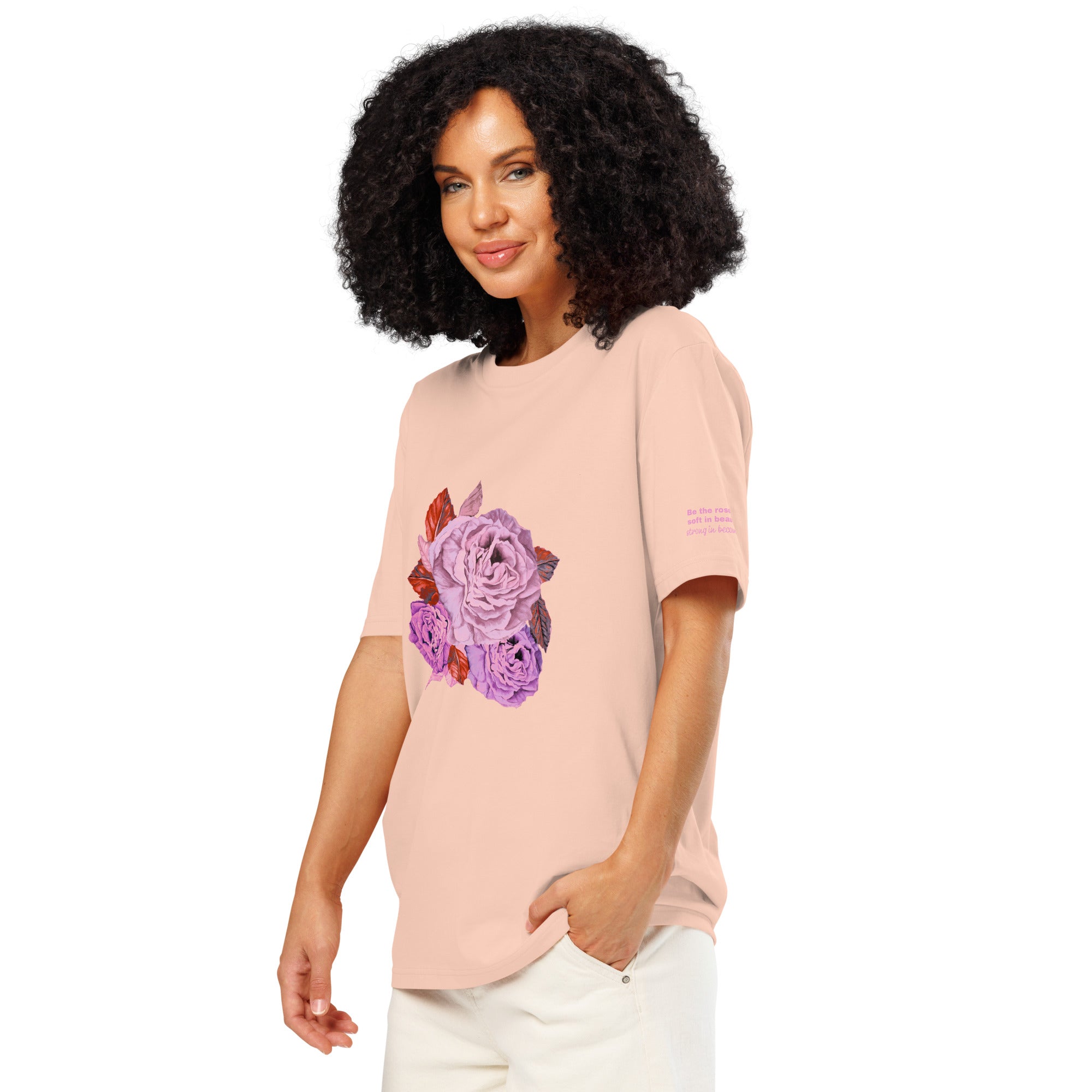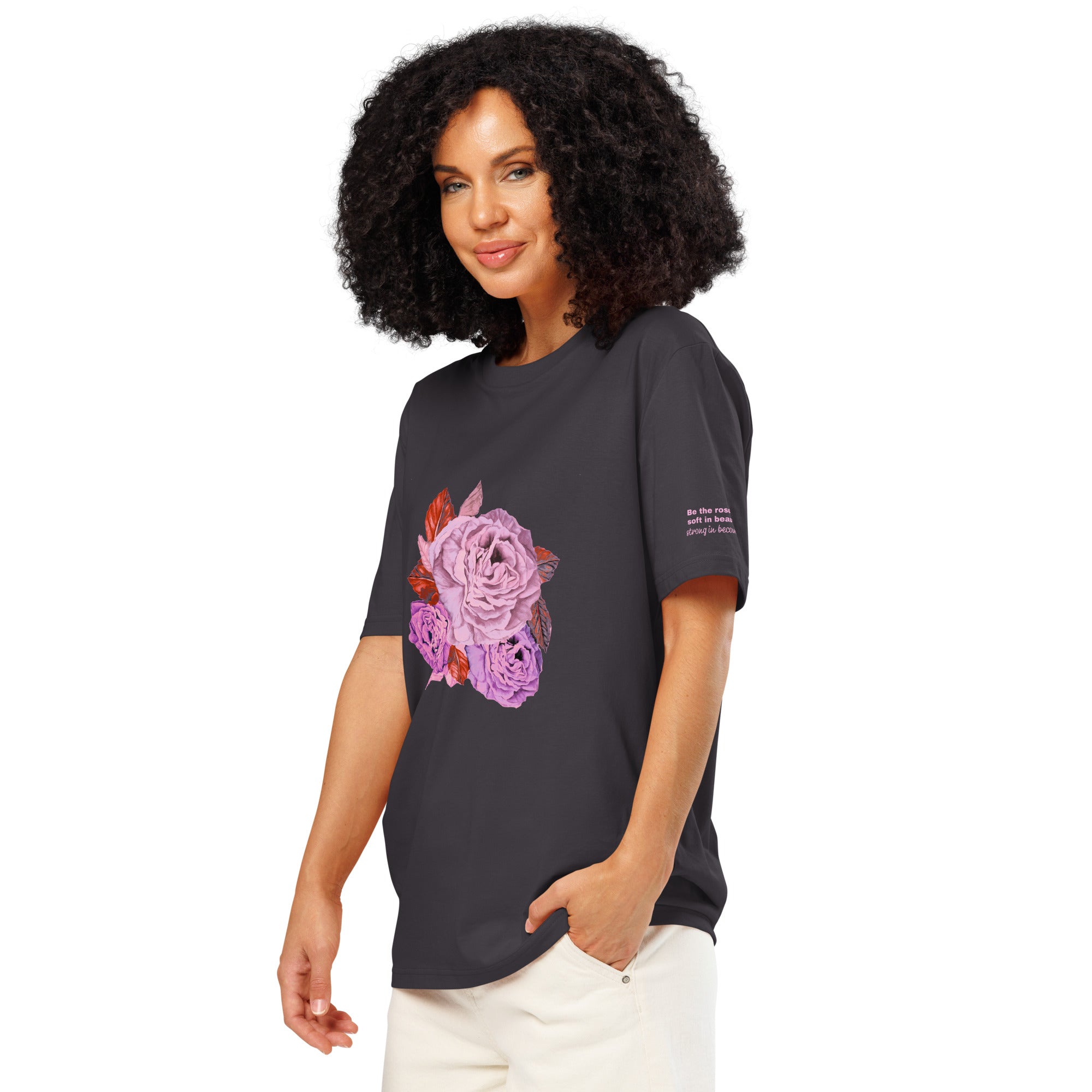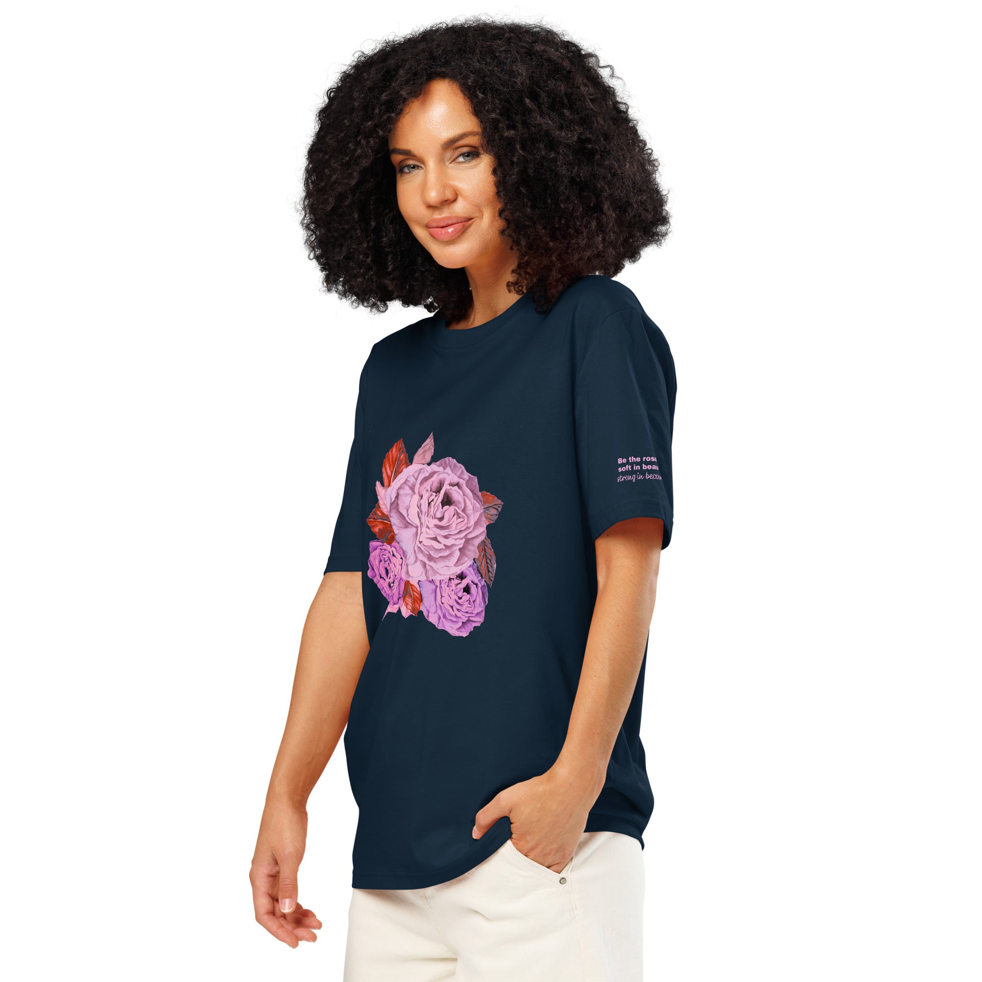 Be the rose, soft in beauty, strong in becoming - Organic ribbed neck t-shirt