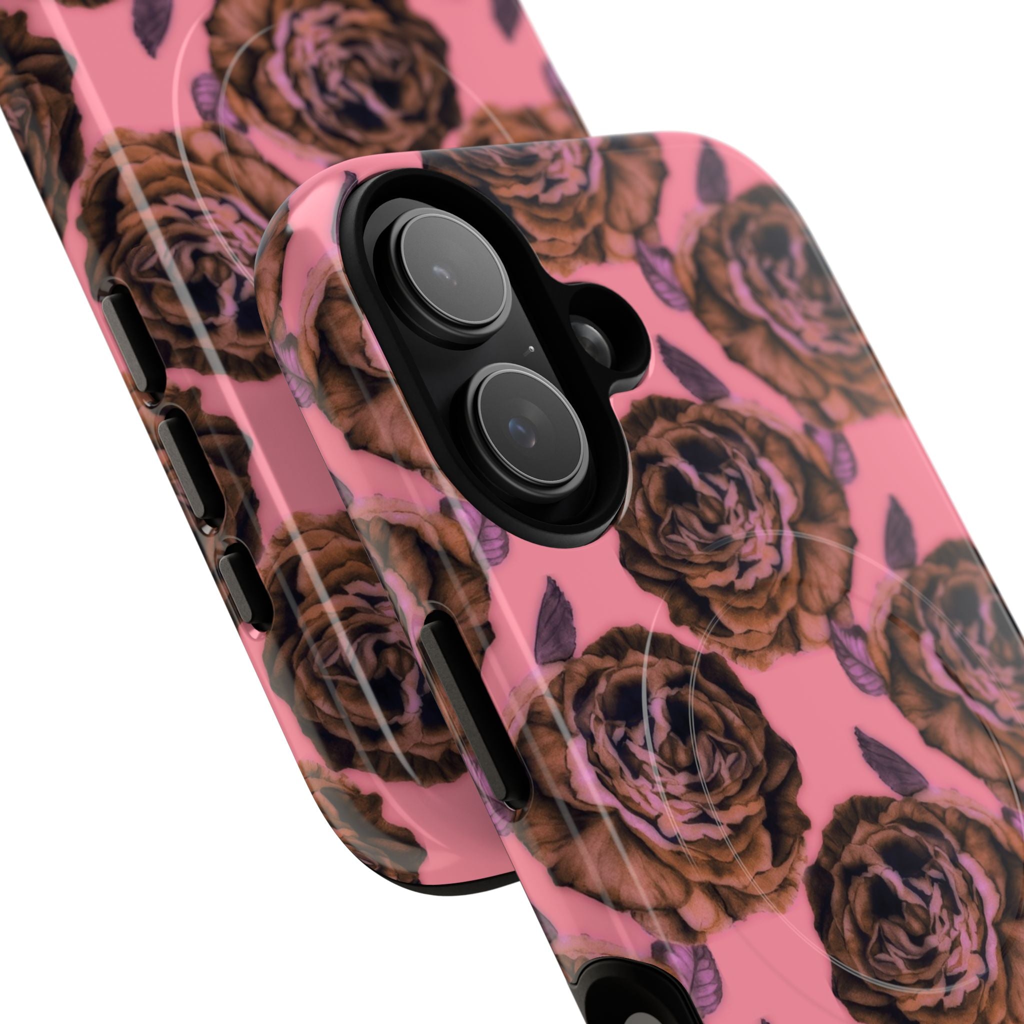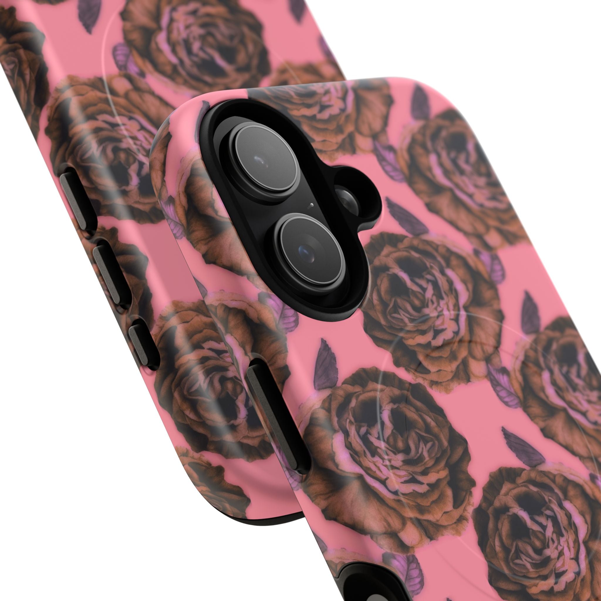 This slim, protective phone case turns your device into a little piece of personal art. The soft TPU inner liner cushions shocks while the rigid polycarbonate shell resists everyday bumps and scrapes. A high-density 3D wrap captures the painterly rose motif in rich color across the full surface, finished in either glossy or matte depending on your preference. Magnetic MagSafe compatibility keeps wireless charging and accessories easy, and precise cutouts keep ports and buttons accessible. It feels sturdy in hand yet still lightweight — a daily carry that adds personality and protection.