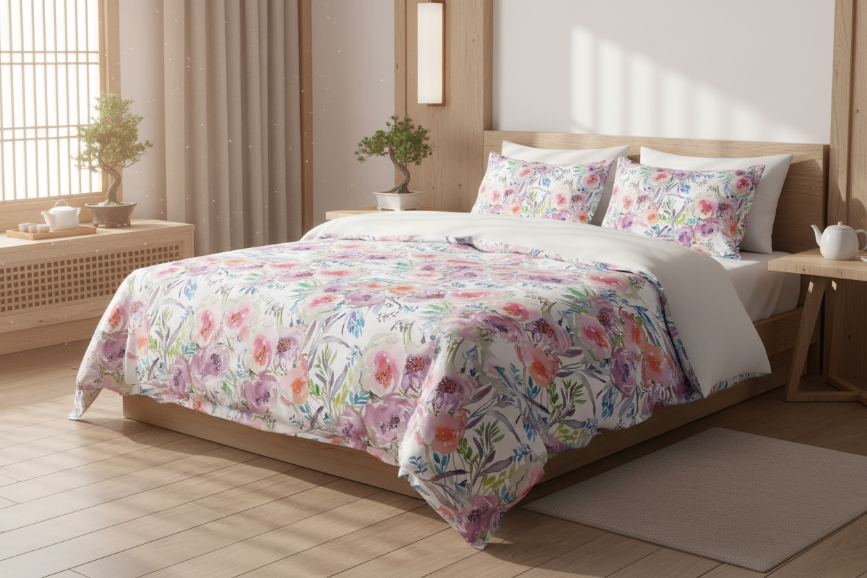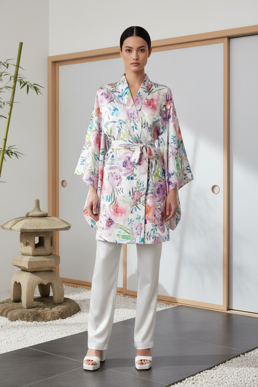 - Technique: Watercolor illustration with oriental botanical motifs