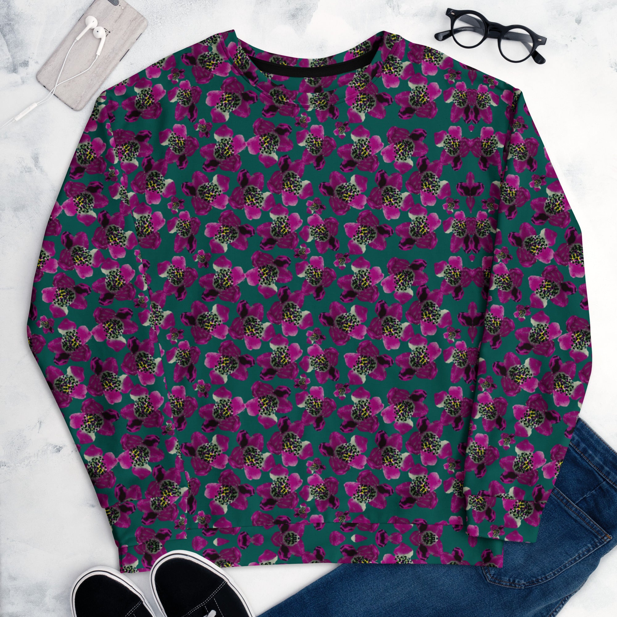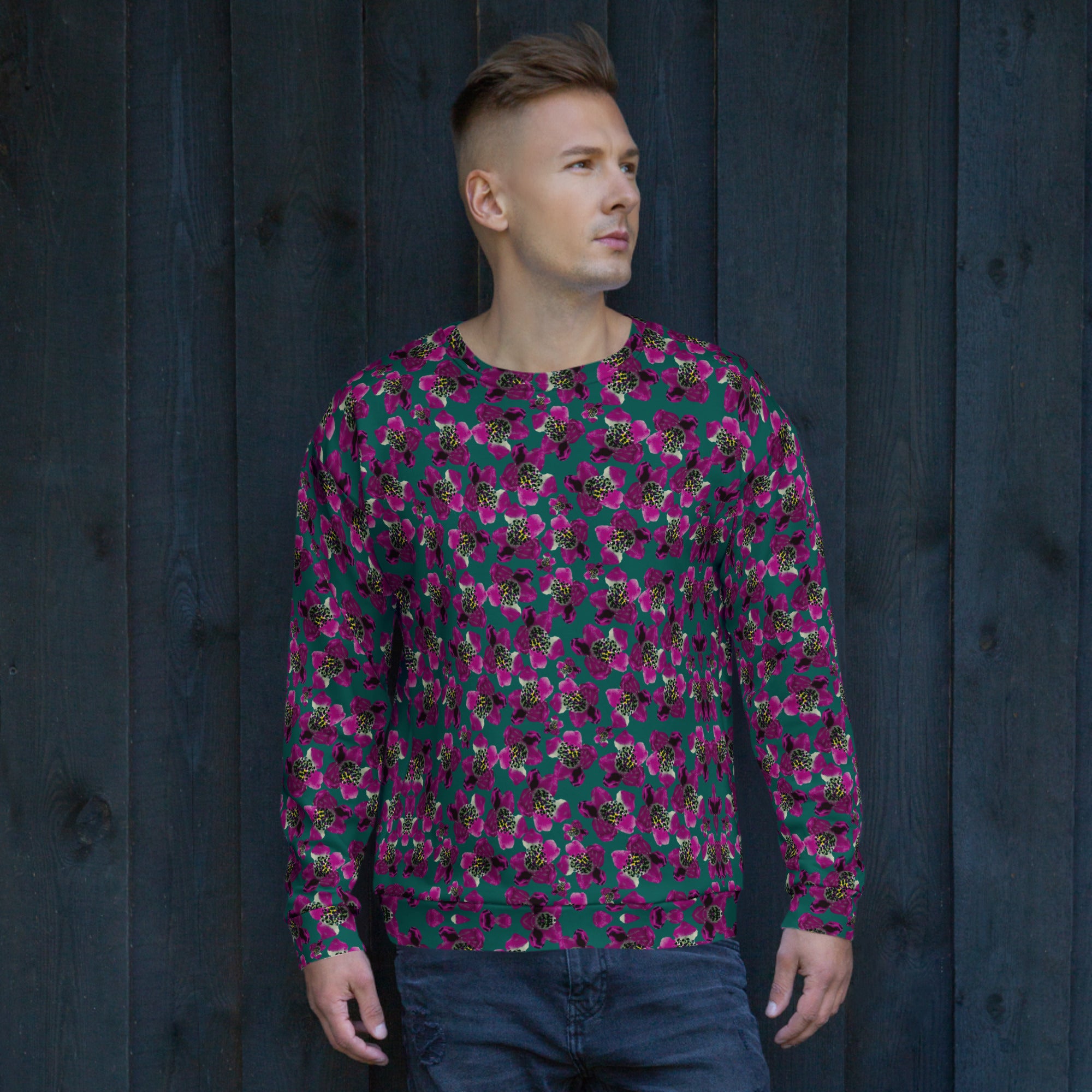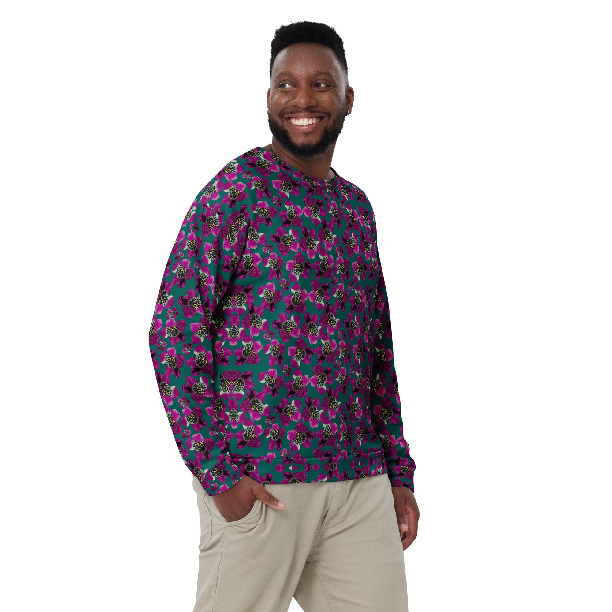 Each unique, all-over printed sweatshirt is precision-cut and hand-sewn to achieve the best possible look and bring out the intricate design. What's more, the durable fabric with a cotton-feel face and soft brushed fleece inside means that this sweatshirt is bound to become your favorite for a long time.