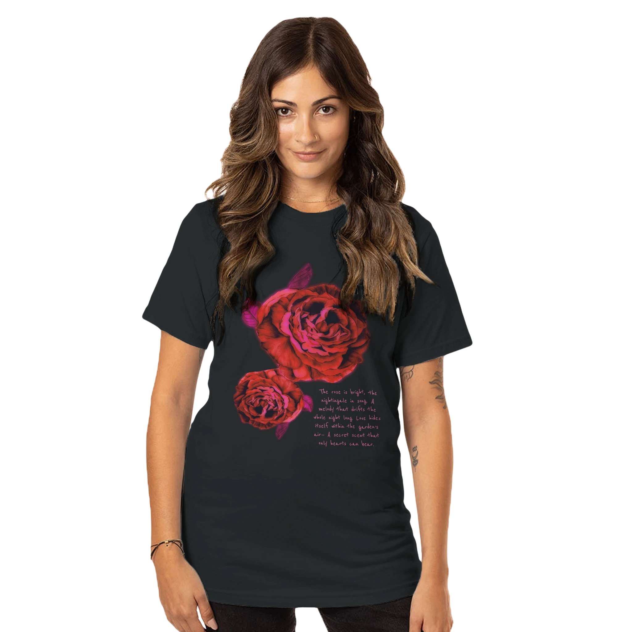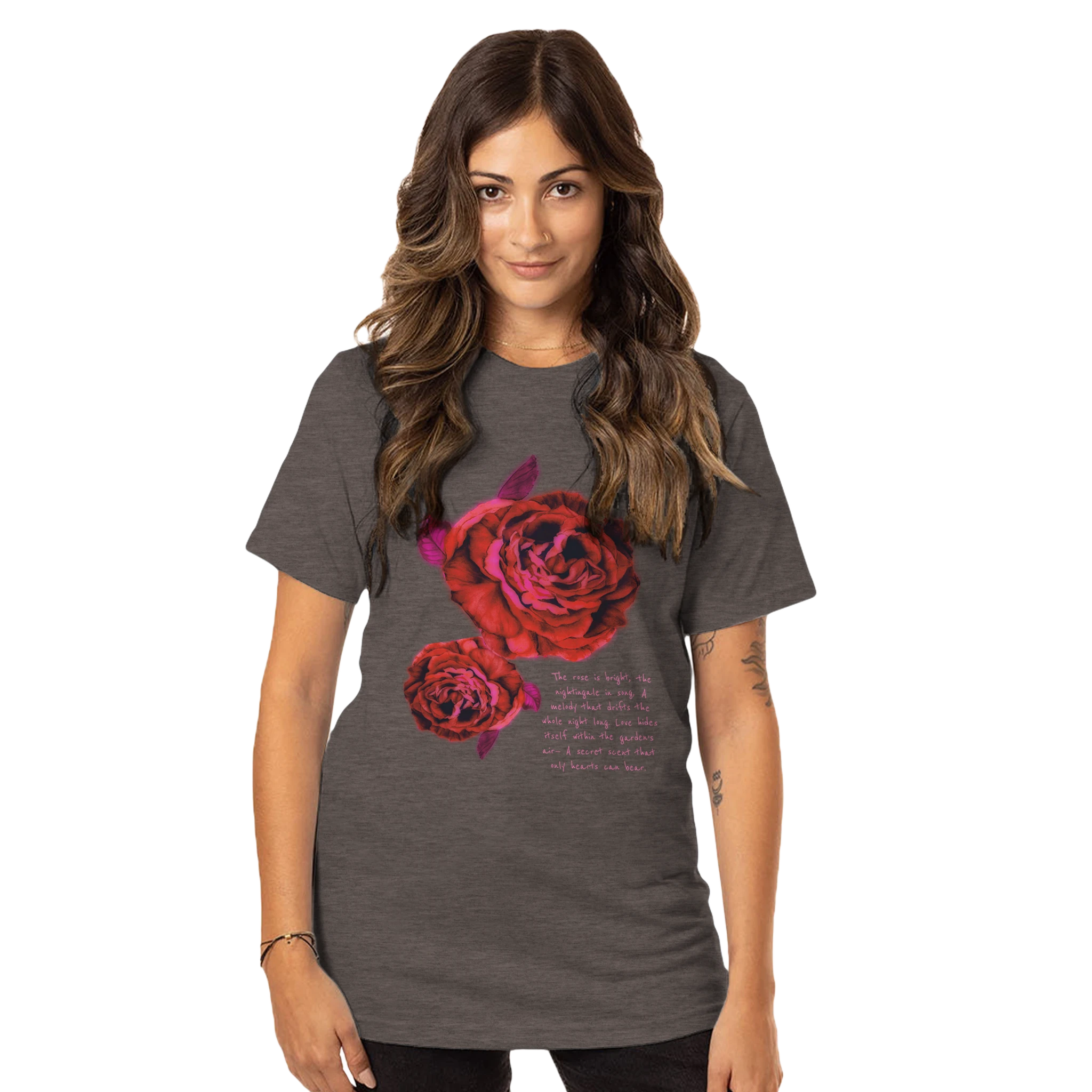 - Print DTG - Poem: "The rose is bright, the nightingale in song,